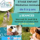 Pendant les vacances de la Toussaint, la Maison Pour Tous propose aux enfants de 6 à 9 ans un stage de médiation animale les 29, 30 et 31 octobre de 10h30 à 11h30 au Centre Social et Culturel du Mont Berjon - rue René Crozet.